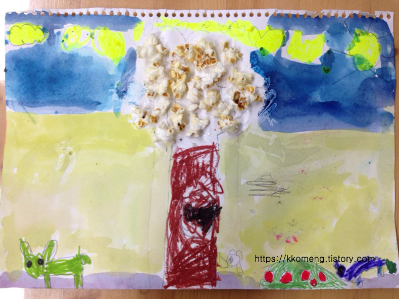 3. 크레파스와 물감으로 채색하고 원하는 제목도 붙여본다.